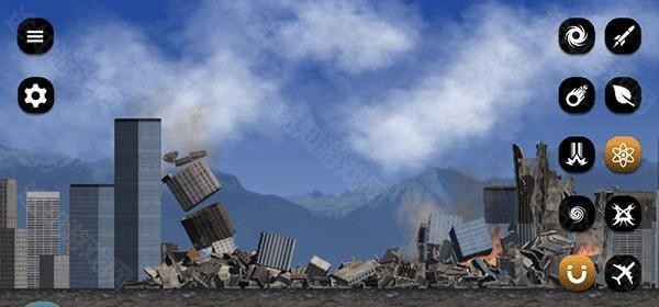 1、该游戏是一个物理沙盒,在这里你可以利用核弹、导弹、黑洞、激光束或闪电来粉碎城市。